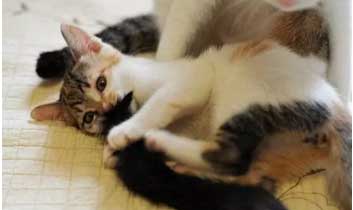 當母貓懷孕之后,有時會舔舐自己的乳頭,導致周圍被毛脫落以方便哺乳。但也有時是因為乳腺發炎而發癢,導致母貓不停舔舐,結果讓毛都掉了。所以當看見貓咪舔舐乳頭時,一定要先檢查有沒有病變。